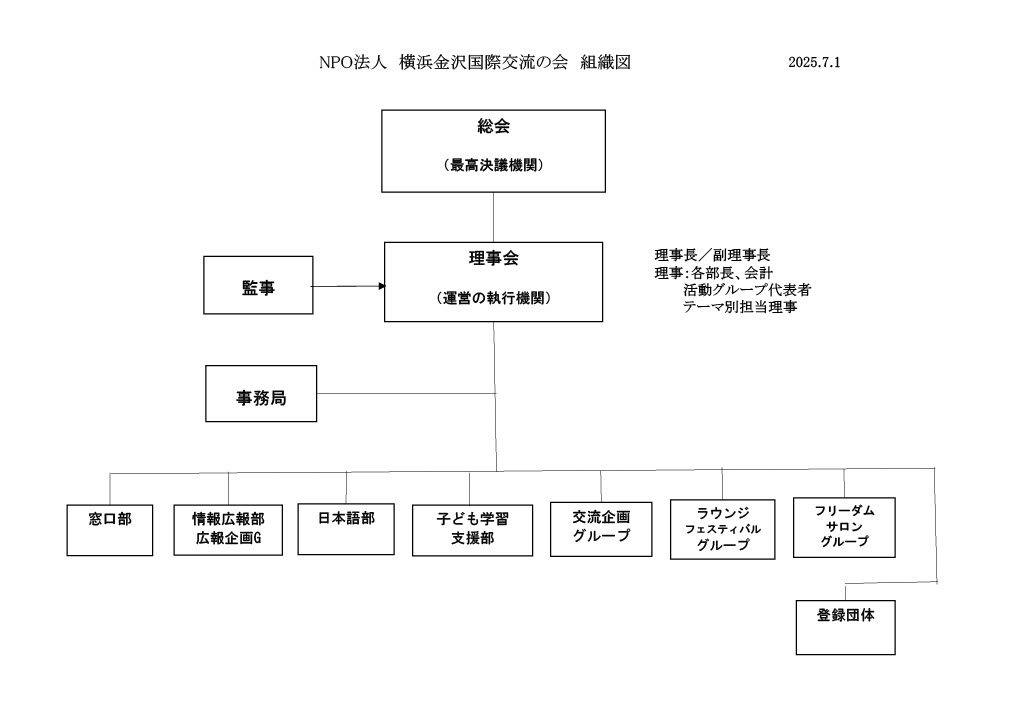 ■「NPO法人 横浜金沢国際交流の会」の組織図